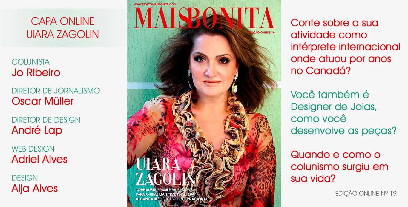 Uiara Zagolin trabalhou muitos anos como Tradutora com especialidade em tradução técnica em siderurgia e metalurgia. Teve grande parte de sua formação no Canadá e Inglaterra. Também é empresária na área de informática e, ainda, joalheira. Desenvolve, na área de Comunicação, o trabalho de Colunista Social junto ao seu Portal Na Mídia, colaborando também com vários veículos de comunicação. Uiara responde sobre a sua carreira e história de vida em entrevista exclusiva à Revista MaisBonita: